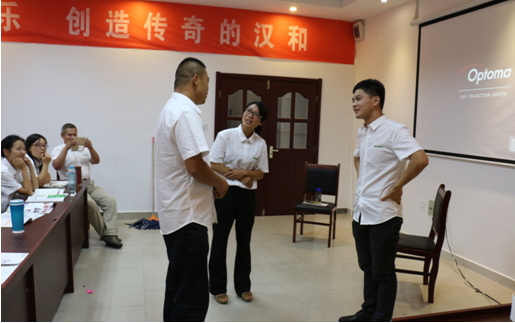 會議第三天,與會人員分成兩隊,戰狼隊和先鋒隊展開對決,進行現場對白演練并安排了產品考試。