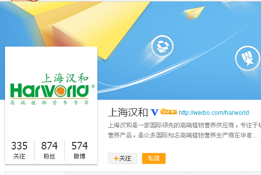 漢和生物官方微博正式啟用9月初,在通過新浪的“企業(yè)認(rèn)證”后,上海漢和農(nóng)業(yè)生產(chǎn)資料有限責(zé)任公司的官方微博(http://weibo.com/harworld)正式落戶新浪。該微博將成為漢和生物對外發(fā)布官詳情>>