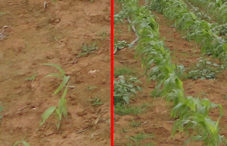 效果:使用鈣鎂硼鋅鐵的玉米地中,玉米枝干粗大長勢密集,莖干粗壯有實骨,葉色深綠、葉張厚實。