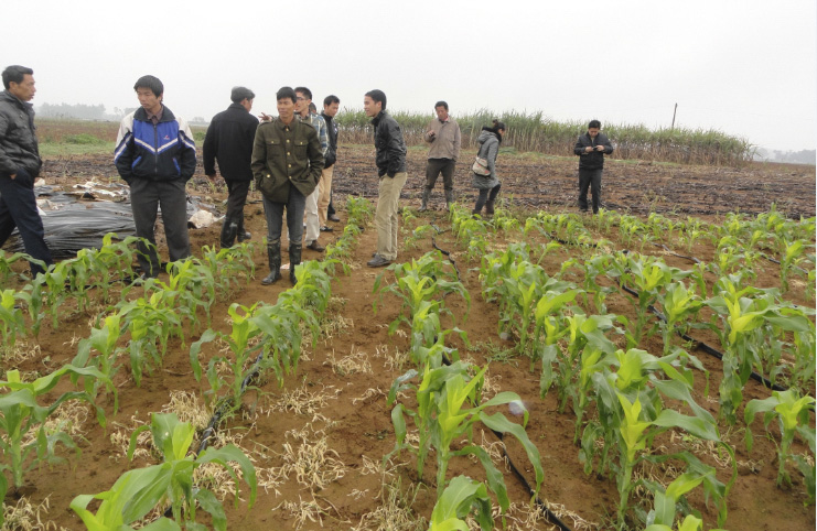 張大哥家玉米長勢極好,引附近種植戶圍觀。