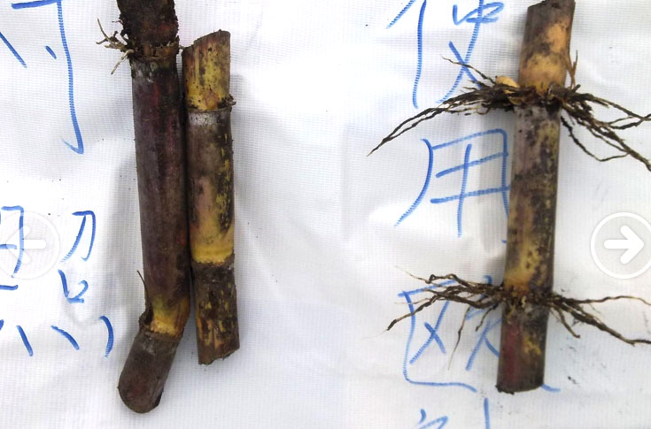 未使用的甘蔗根系與使用歐神產(chǎn)品的甘蔗根系做對(duì)比