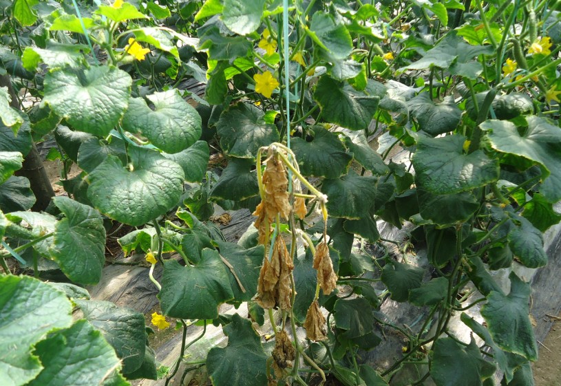 3月16日,經當地的零售店老板的推薦和介紹,了解到該農戶的黃瓜有大量死棵爛苗的現象,遂決定做此次試驗,一來驗證公司產品微根露的效果,二來效果出來后,說服零售店進貨。